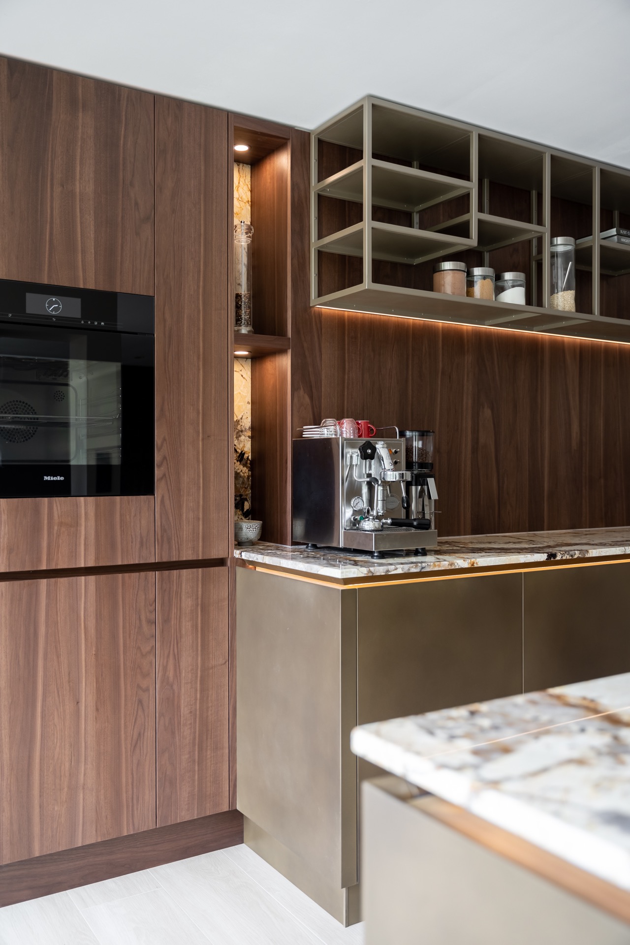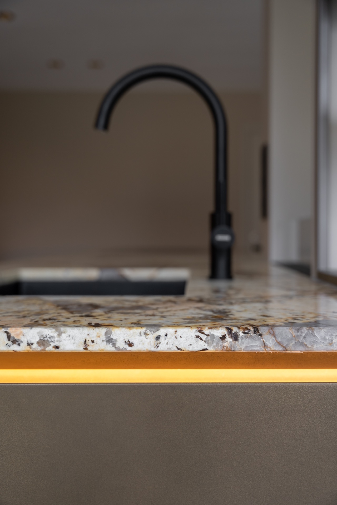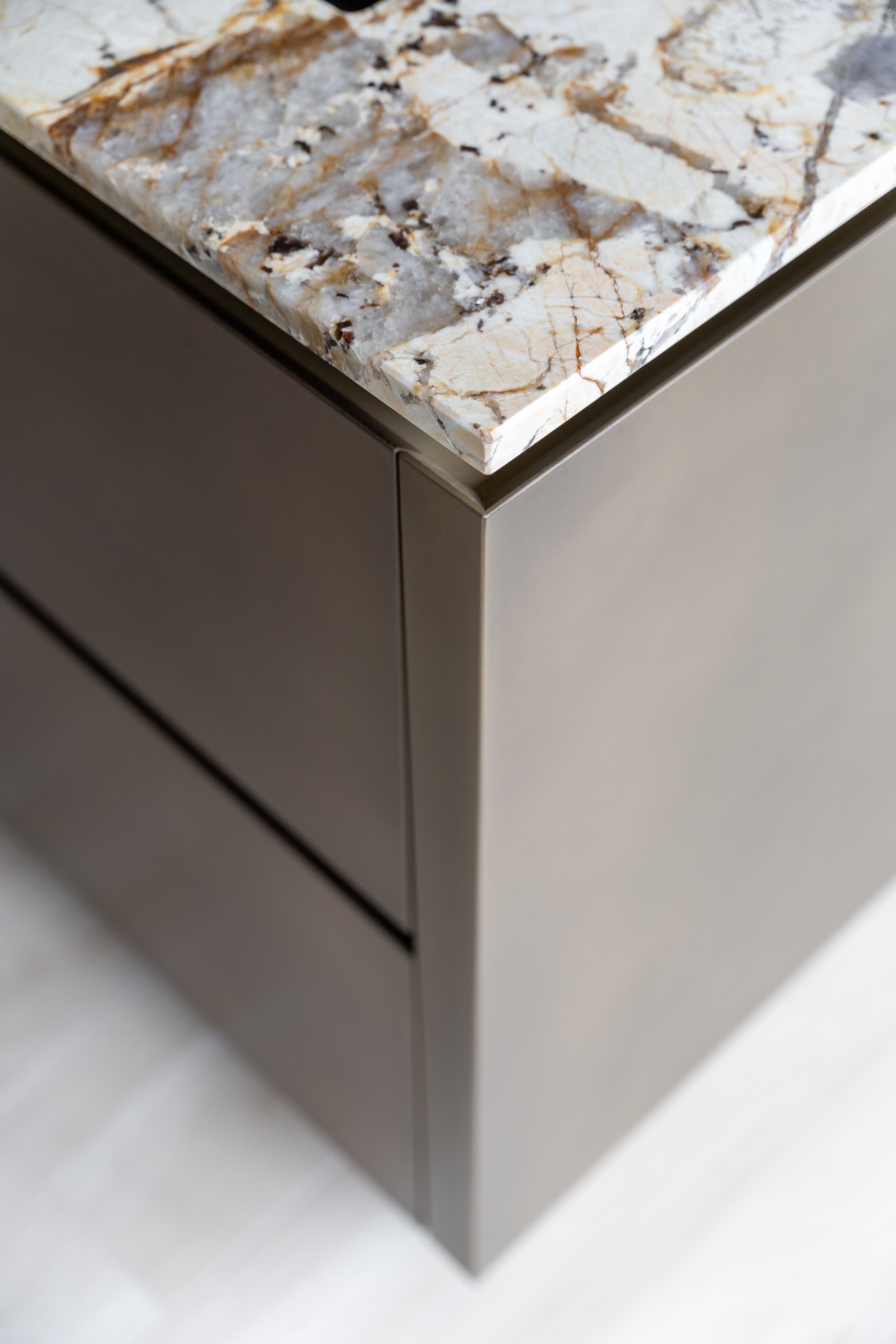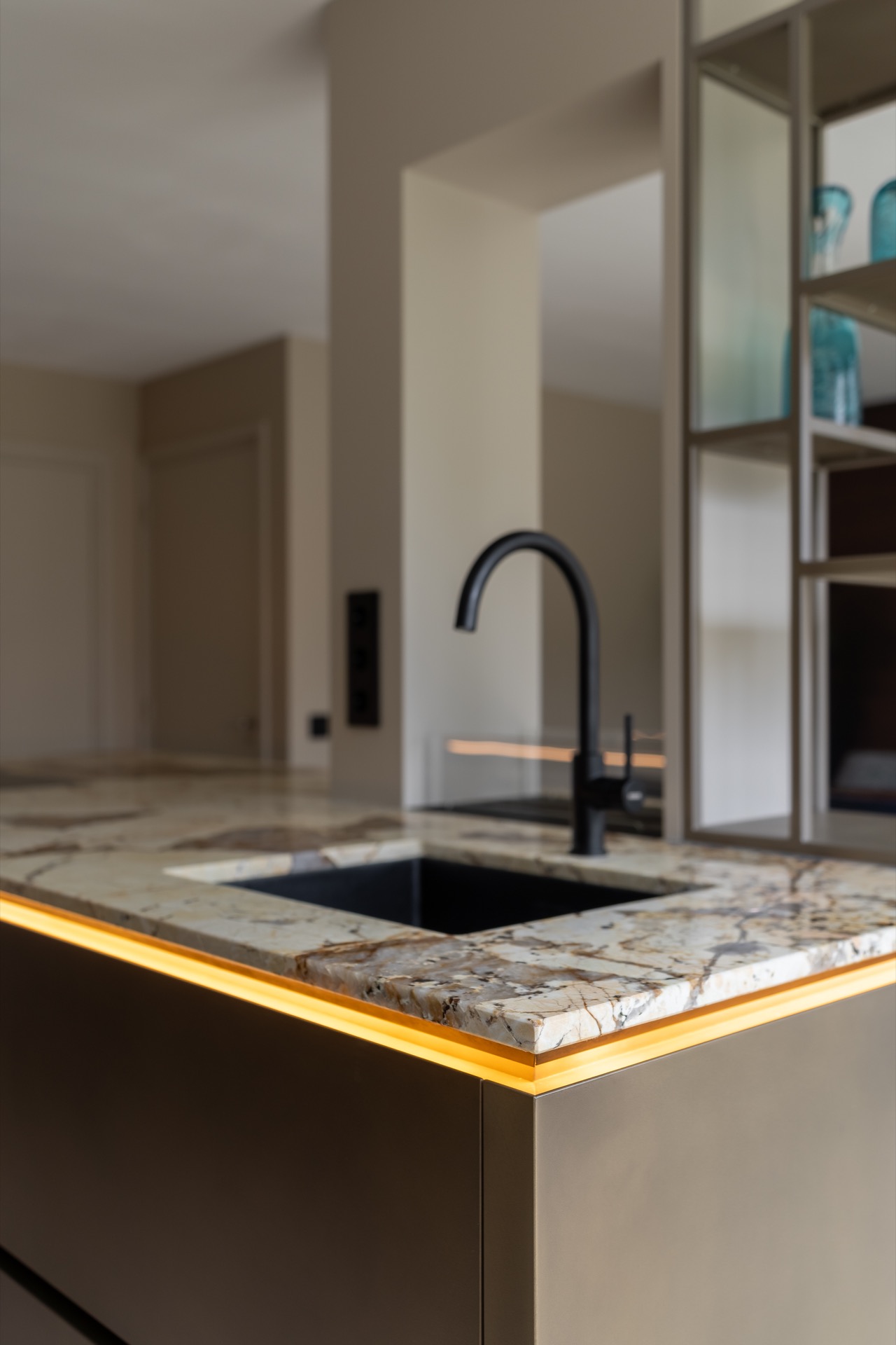 Geoxideerd messing en brons voegen diepte en karakter toe aan de elementen, waardoor ze een tijdloze en elegante esthetiek krijgen. Deze exclusieve afwerkingen creëren een onderscheidende sfeer en benadrukken de aandacht voor detail die kenmerkend is voor Grezzo.